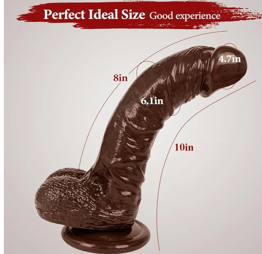 【Perfect Ideal Size】9.64 Inch dildo has experienceable length of 8 Inch. The perimeter of this girthy dildo is 6.1Inch. The large size helps you feel full and satisfied during the experience. Slightly upward curved design is helpful for triggering the G-spot, giving you numb and comfortable enjoyment and satisfaction. Make you want to stop and feel ecstatic.