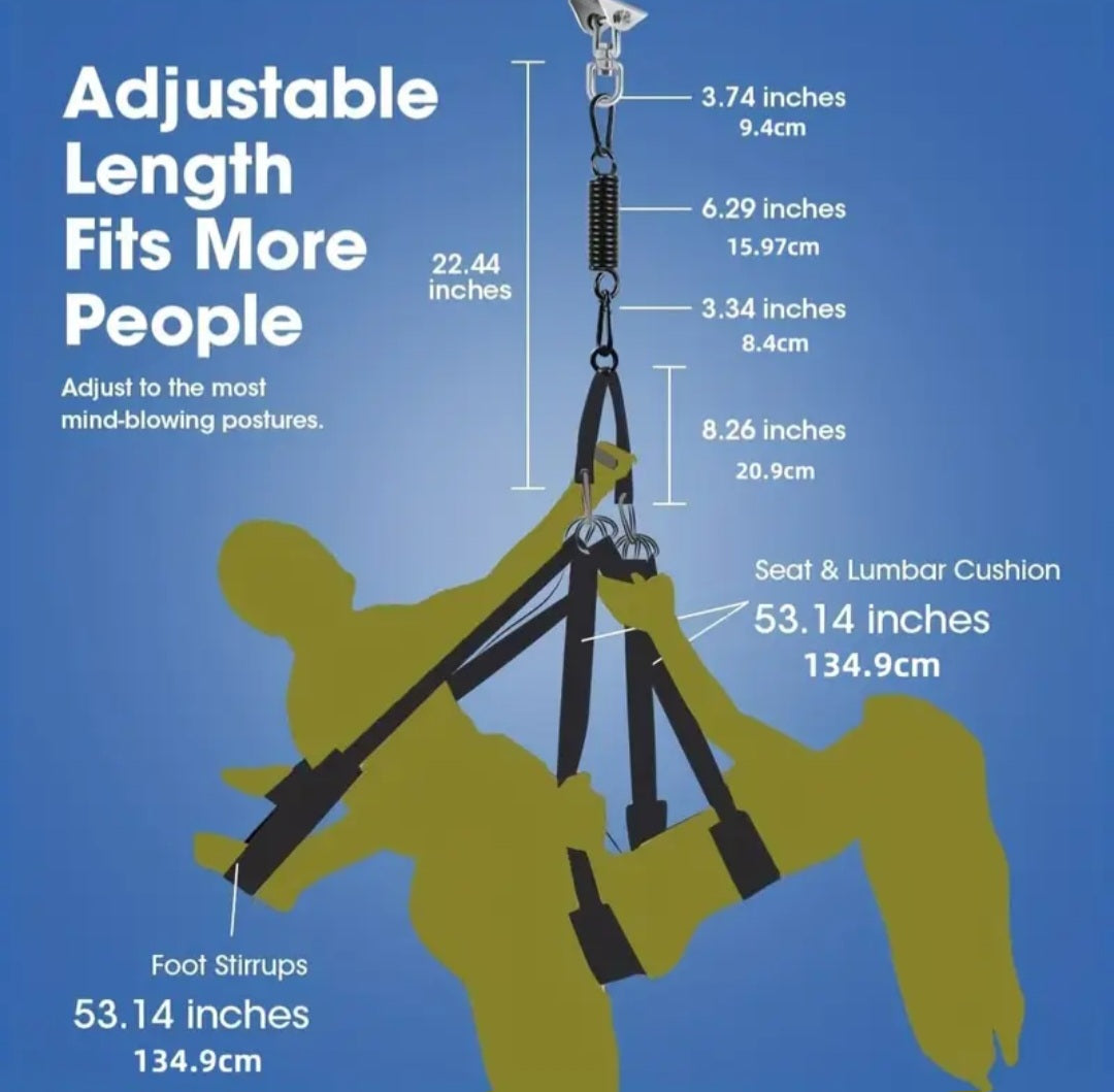 Holds up to 800LBS - With premium paint stand, sturdy steel clips and well made spring, the sex swing can support over 800 pounds. Bring something new into the bedroom, and adult swing gives couples of any strength, height, and weight the ability to try many kinds of position